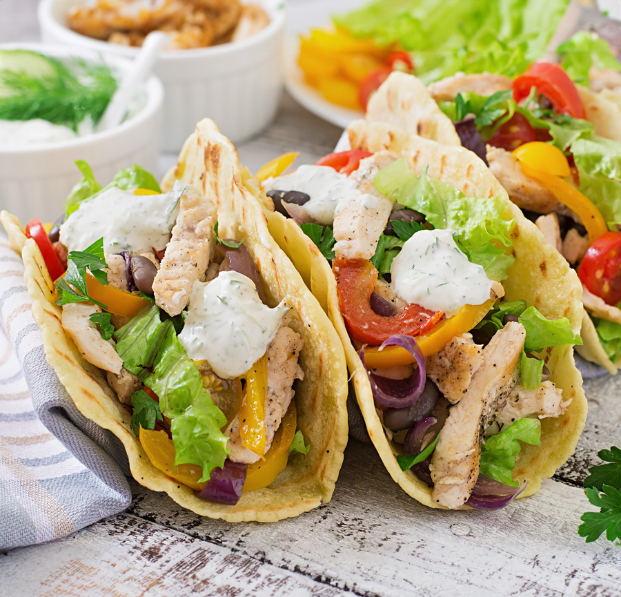 2. Tacos de Pollo con Salsa de Yogur: